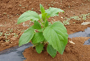 포트에서 오랜 육묘기간을 거친 어린 참깨묘는 정식